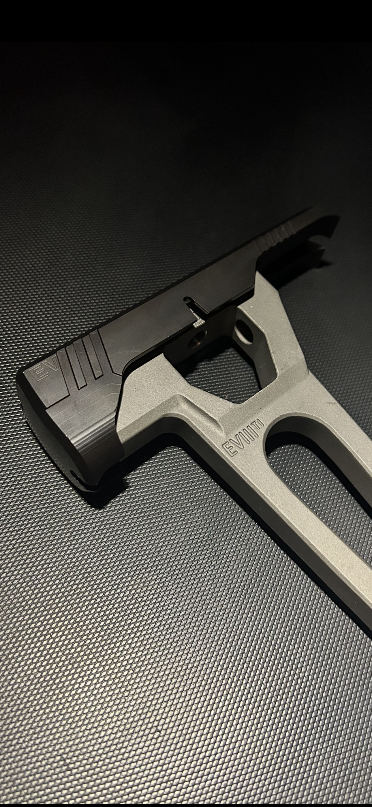 Heads and claws are made from Chromoly steel machined to 1/100th of an inch, bodies are made from titanium to aid in the strength-to-weight ratio.